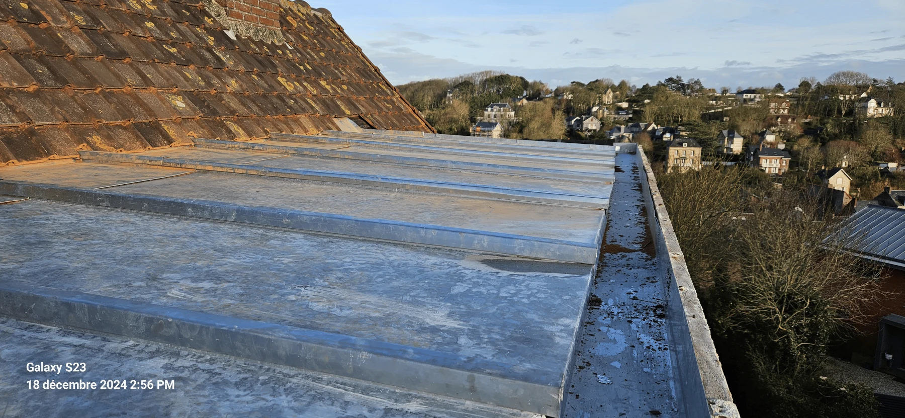 Terrasson en zinc avec couvre joint. Veules les Roses (76)
